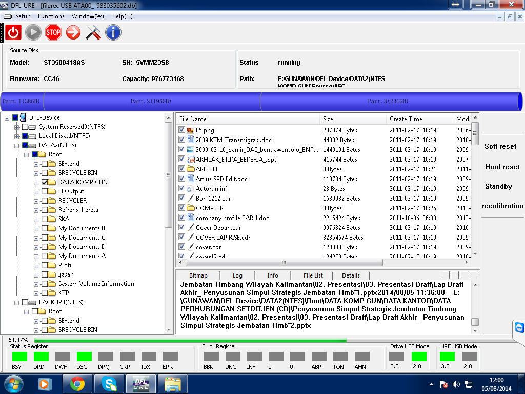 Setelah proses recovery data selesai, seluruh data yang berhasil di recovery di copy ke harddisk baru yang masih sehat.